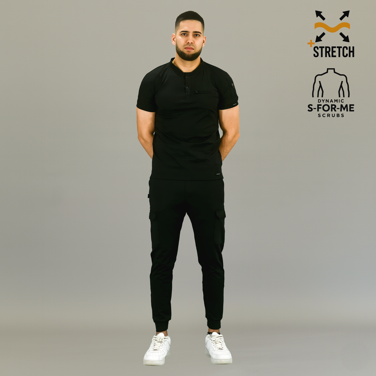 Move freely, look sharp. The Men’s Scrub Jogger Pants 901 in black combine sleek style with all-day comfort. Designed in super-stretch knit fabric, they deliver durability and flexibility for long shifts—no ironing needed.