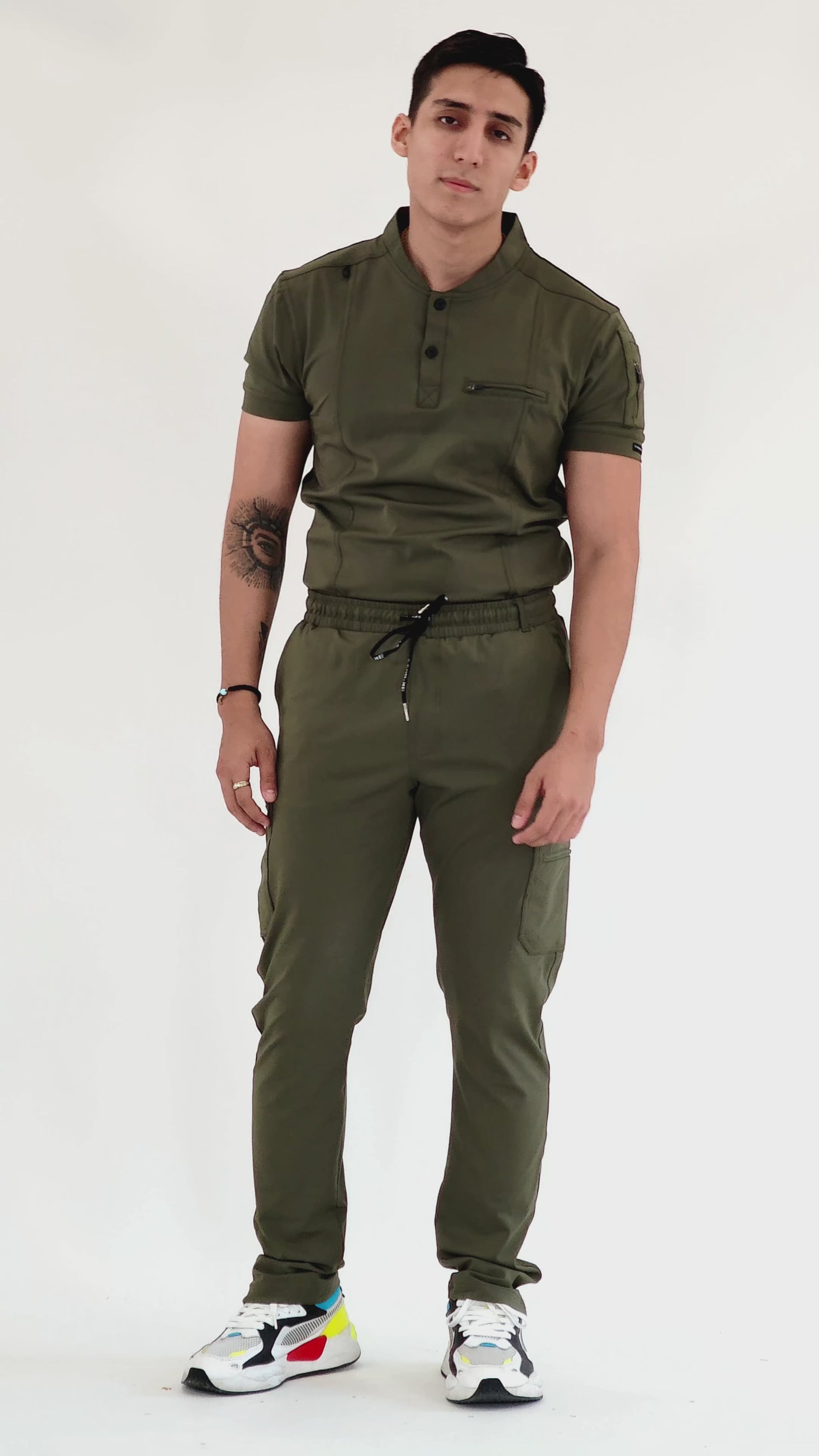 The Olive Green shade provides a bold, contemporary look that pairs effortlessly with any scrub pants, while the mandarin collar with dual-button detailing adds a clean, structured finish that elevates your everyday uniform.